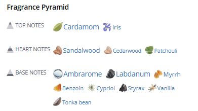 • میانه (Heart Notes): پچولی، چوب صندل، سدر