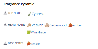 انگور شرابی, چوب سدر, کهربا, وتیور